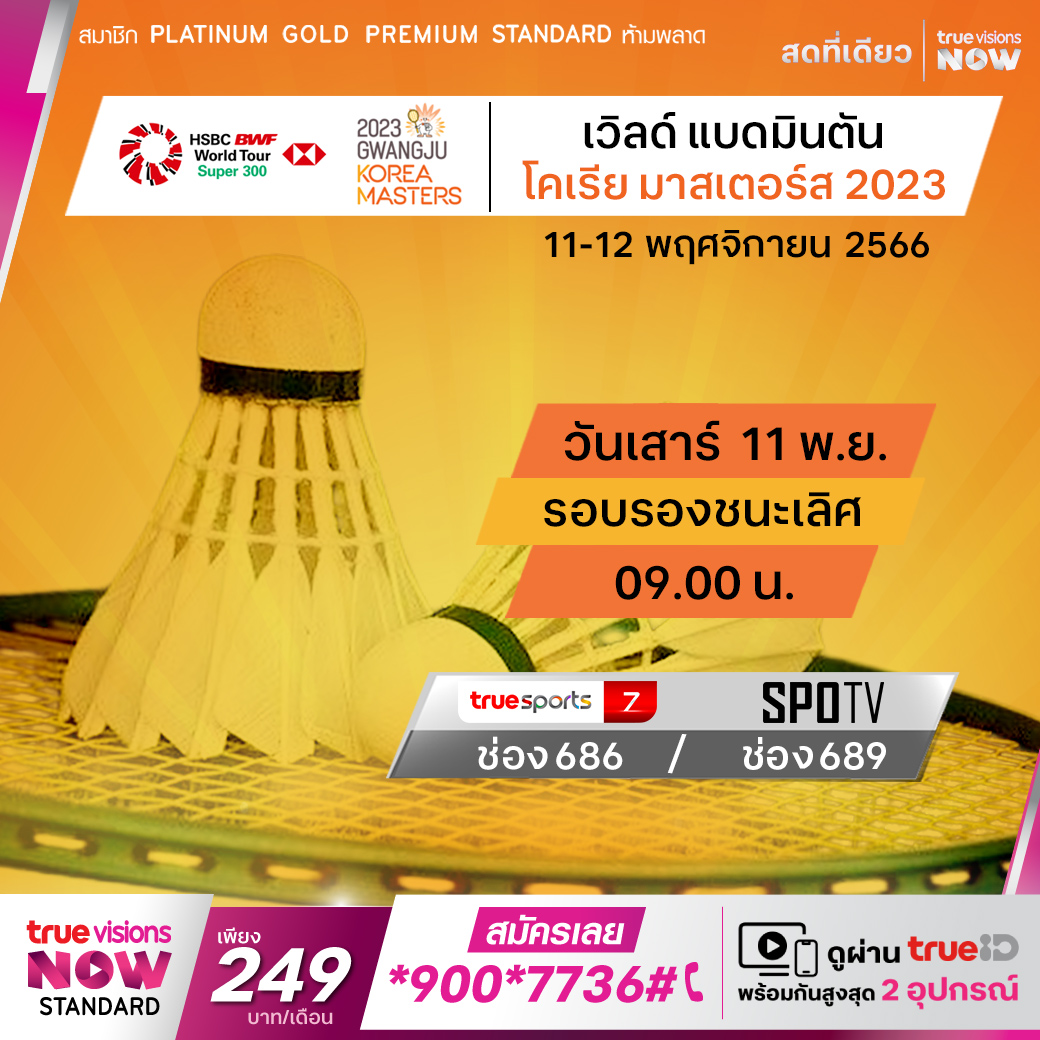 แบดมินตันเก็บคะแนนสะสมโลก ประเดิมสัปดาห์นี้กันด้วย โคเรีย มาสเตอร์ส เวิลด์ ทัวร์ ซูเปอร์ 300 ชมการต่อสู้เพื่อตำแหน่งแชมป์จากนักแบดมินตันมือดีจากทั่วโลก ชมสด ทางทรูวิชั่นส์ ที่เดียว