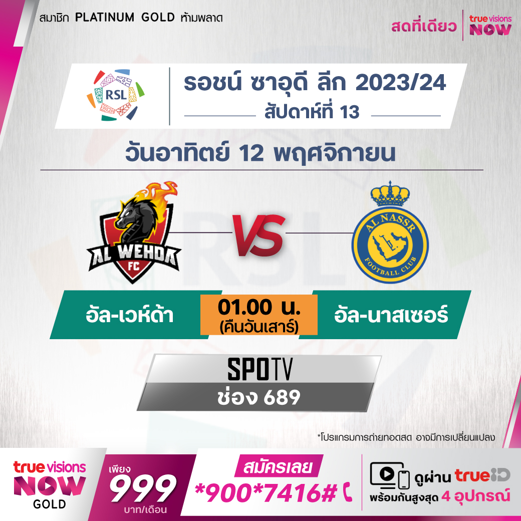 Al-Wehda vs Al-Nassr เวลา 01.00-03.00 ทางช่อง SPOTV (689)