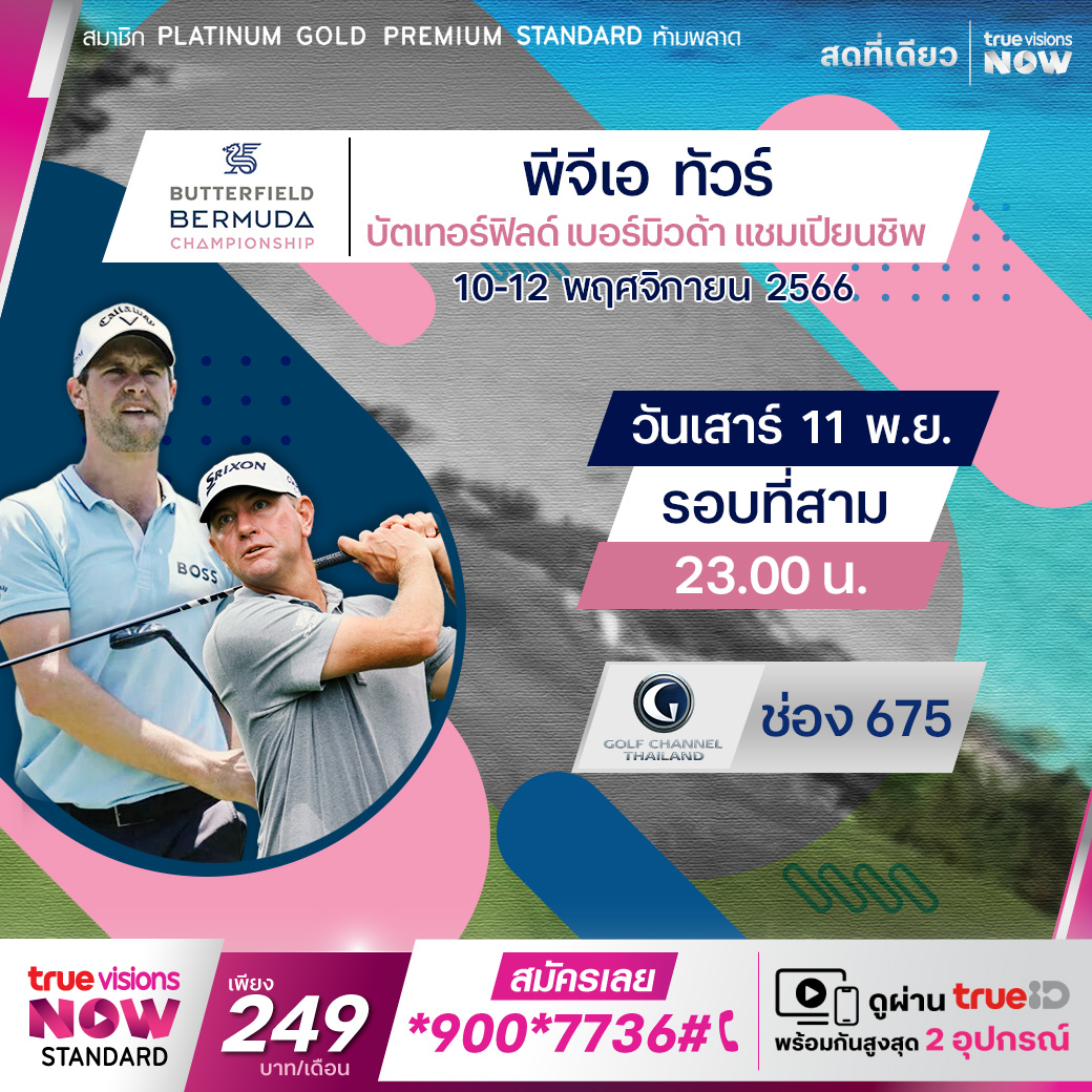ยืนหนึ่งมาอย่างยาวนาน กับ พีจีเอ ทัวร์ ทัวร์อันดับ 1 ของโลก ยังแข่งขันและมีโปรแกรมถ่ายทอดสดให้แฟนๆ ได้ติดตามกันต่อเนื่อง สัปดาห์นี้ พบกับรายการ บัทเทอร์ฟิลด์ เบอร์มิวด้า แชมเปี้ยนชิพ จากสนาม พอร์ท รอยัล กอล์ฟ คอร์ส ในเซาธ์แฮมป์ตัน เบอร์มิวด้า ลุ้นกันว่าใครจะก้าวถึงตำแหน่งแชมป์รายการนี้ ชมสดครบทั้ง 4 รอบ ชมสด ทางทรูวิชั่นส์ ที่เดียว