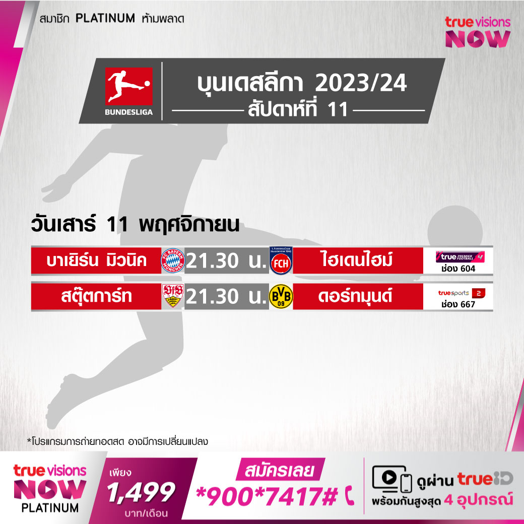 Bayern vs Heidenheim 1846 เวลา 21.30-23.30 ทางช่อง TPF 4 (604)