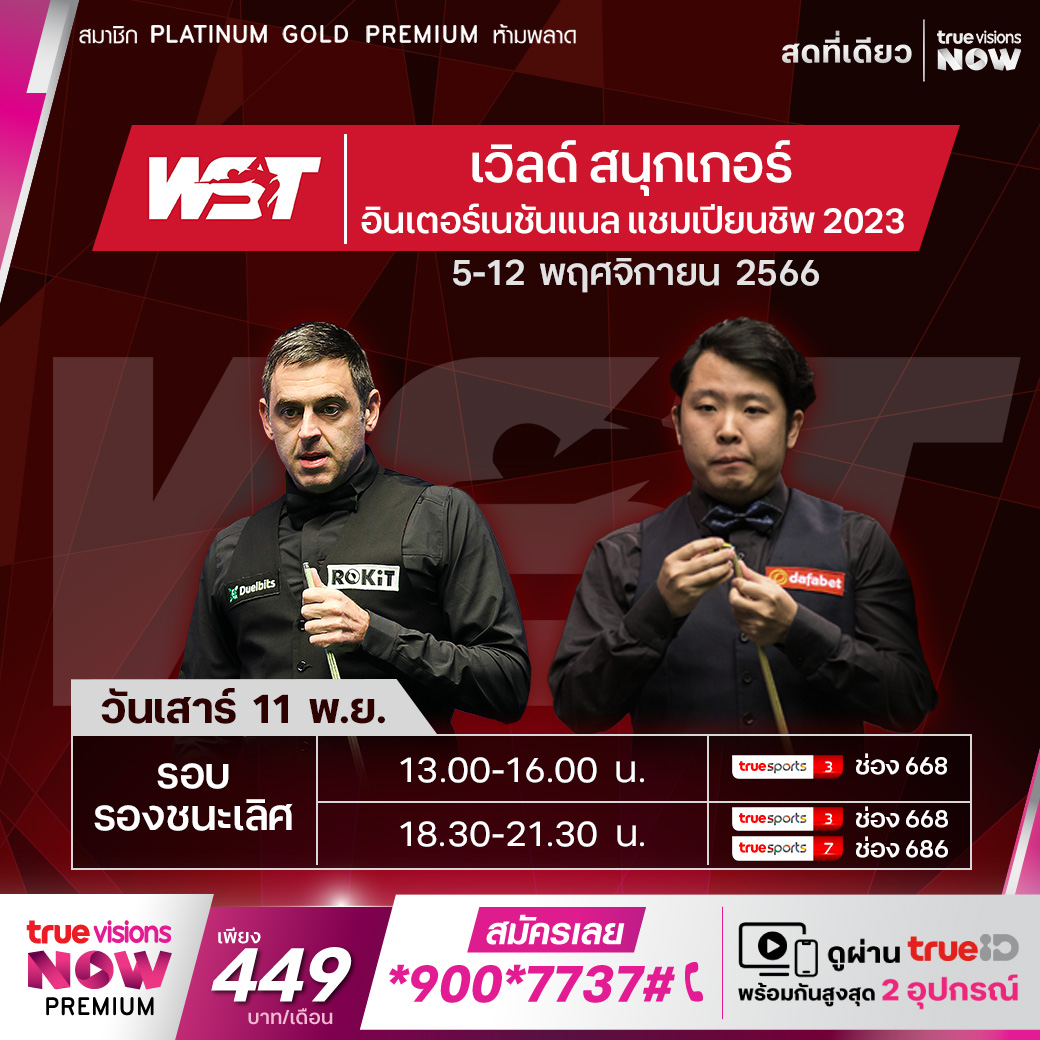 เวิลด์ สนุกเกอร์ รายการ อินเตอร์เนชั่นแนล แชมเปี้ยนชิพ 2023 ที่เทียนจิน ซิตี้ เตรียมพบกับลีลาและฝีมือขั้นเทพของจอมแม่นคิวระดับท็อปของโลก ที่มุ่งมั่นเพื่อชัยชนะและตำแหน่งแชมป์อันทรงเกียรติ พร้อมเงินรางวัลมหาศาล สดครบทุกรอบ ชมสด ทางทรูวิชั่นส์ ที่เดียว