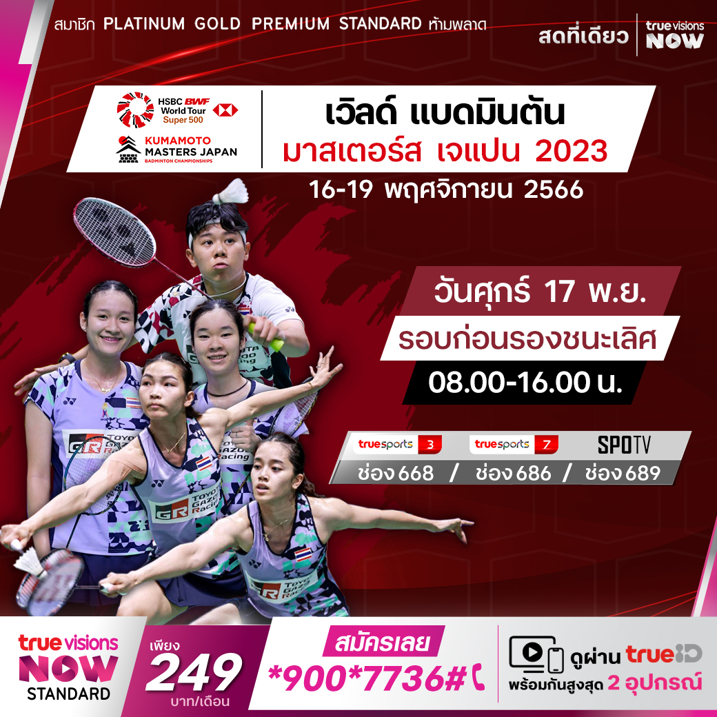 แบดมินตันเก็บคะแนนสะสมโลก บีดับเบิ้ลยูเอฟ ปักหลักเปิดศึกในทวีปเอเชียอย่างต่อเนื่อง สัปดาห์นี้ไปกันที่แดนอาทิตย์อุทัย ประเทศญี่ปุ่น กับ รายการ คุมะโมโตะ มาสเตอร์ส เจแปน 2023 รายการสำคัญระดับ เวิลด์ ทัวร์ ซูเปอร์ 500 เชียร์ทีมนักแบดมินตันไทย และตัวแทนสุดยอดฝีมือจากทั่วโลกสู้เพื่อตำแหน่งแชมป์ ชมสด ทางทรูวิชั่นส์ ที่เดียว
