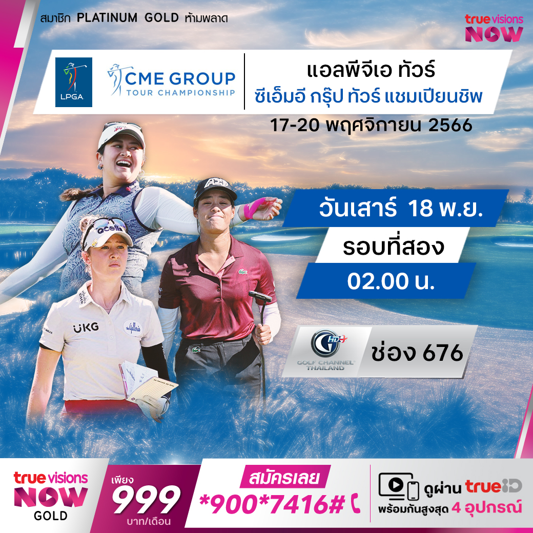 แอลพีจีเอ ทัวร์ 2023 ปิดท้ายฤดูกาลอย่างยิ่งใหญ่ กับรายการ ซีเอ็มอี กรุ๊ป ทัวร์ แชมเปี้ยนชิพ จากสนาม ทิบูรอน กอล์ฟ คลับ โกลด์ คอร์ส ในเมืองเนเปิ้ลส์ รัฐฟลอริด้า ชิงเงินรางวัลรวมมหาศาล 7,000,000 เหรียญสหรัฐฯ โปรสาวไทยตัวท็อปของทัวร์ ตบเท้าเข้าลุ้นแชมป์กับมือระดับโลกที่ต้องการจะเป็นแชมป์เช่นเดียวกัน ชมสดครบทั้ง 4 รอบ ที่ ทรูวิชั่นส์