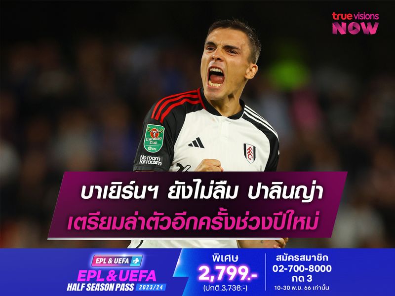 "เสือใต้" บาเยิร์น มิวนิค สโมสรดังของ บุนเดสลีกา เยอรมนี ยังไม่ละความพยายามในการตามล่าตัว ชูเอา ปาลินญ่า มิดฟิลด์ตัวเก่งของ "เจ้าสัวน้อย" ฟูเเล่ม จากเวที พรีเมียร์ลีก อังกฤษ มาร่วมทัพ! โดยล่าสุด บาเยิร์นฯ วางแผนที่จะเปิดเจรจากับ ฟูเเล่ม อีกครั้งในเดือนมกราคมนี้