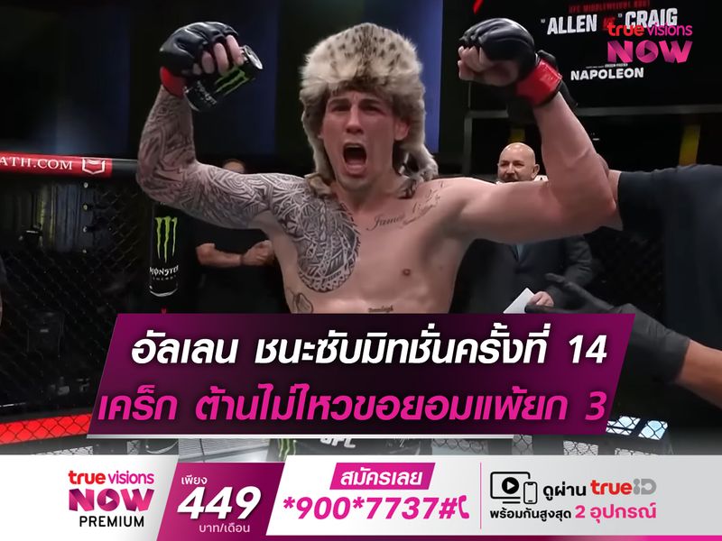 แบรนดอน อัลเลน ยอดนักสู้ชาวสหรัฐฯ เดินหน้าคว้าชัยเป็นไฟต์ที่ 6 ติดต่อกัน! ในรายการ "UFC FIGHT NIGHT: ALLEN VS CRAIG" ณ สังเวียน ยูเอฟซี เอเพ็กซ์ ลาสเวกัส ประเทศสหรัฐอเมริกา เมื่อวานที่ผ่านมา(19 พฤศจิกายน)