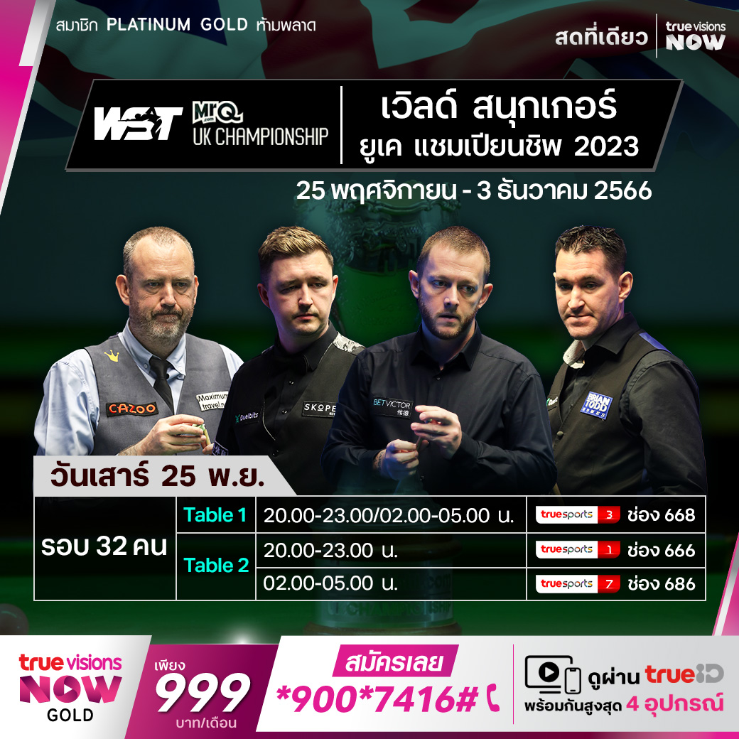 สิ้นสุดการรอคอยสำหรับแฟนๆ กีฬาสนุกเกอร์ ส่งท้ายปีกับรายการที่ยิ่งใหญ่ที่เป็นระดับ ทริปเปิ้ลคราวน์ อันทรงเกียรติ และประวัติศาสตร์ที่จารึกมายาวนาน กับรายการ ยูเค แชมเปี้ยนชิพ 2023 ที่แฟนๆ จะได้สัมผัสกับเกมระดับโลกจากบรรดาตัวเทพของวงการ ที่พร้อมสร้างสีสันและเปิดศึกดวลกันเพื่อชัยชนะ ทุกแต้ม ทุกเบรก ทุกเฟรม ทุกชัยชนะ เพื่อตำแหน่งแชมป์แห่งศักดิ์ศรีจากสังเวียน ยอร์ค บาร์บิเคน ประเทศอังกฤษ สดครบทุกแมตช์ ชมสด ทางทรูวิชั่นส์ ที่เดียว