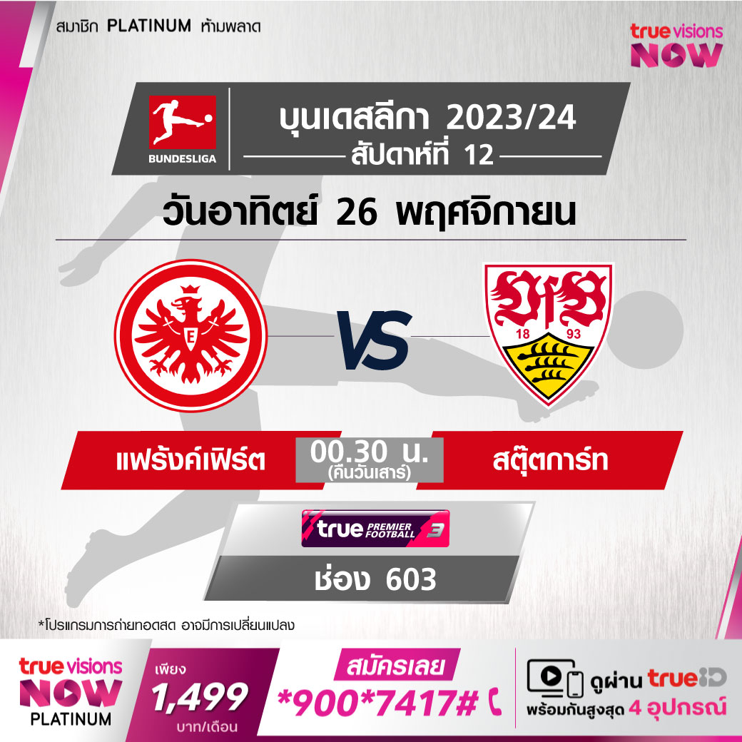 Frankfurt vs Stuttgart เวลา 00.30-02.30 ทางช่อง TPF 3 (603)