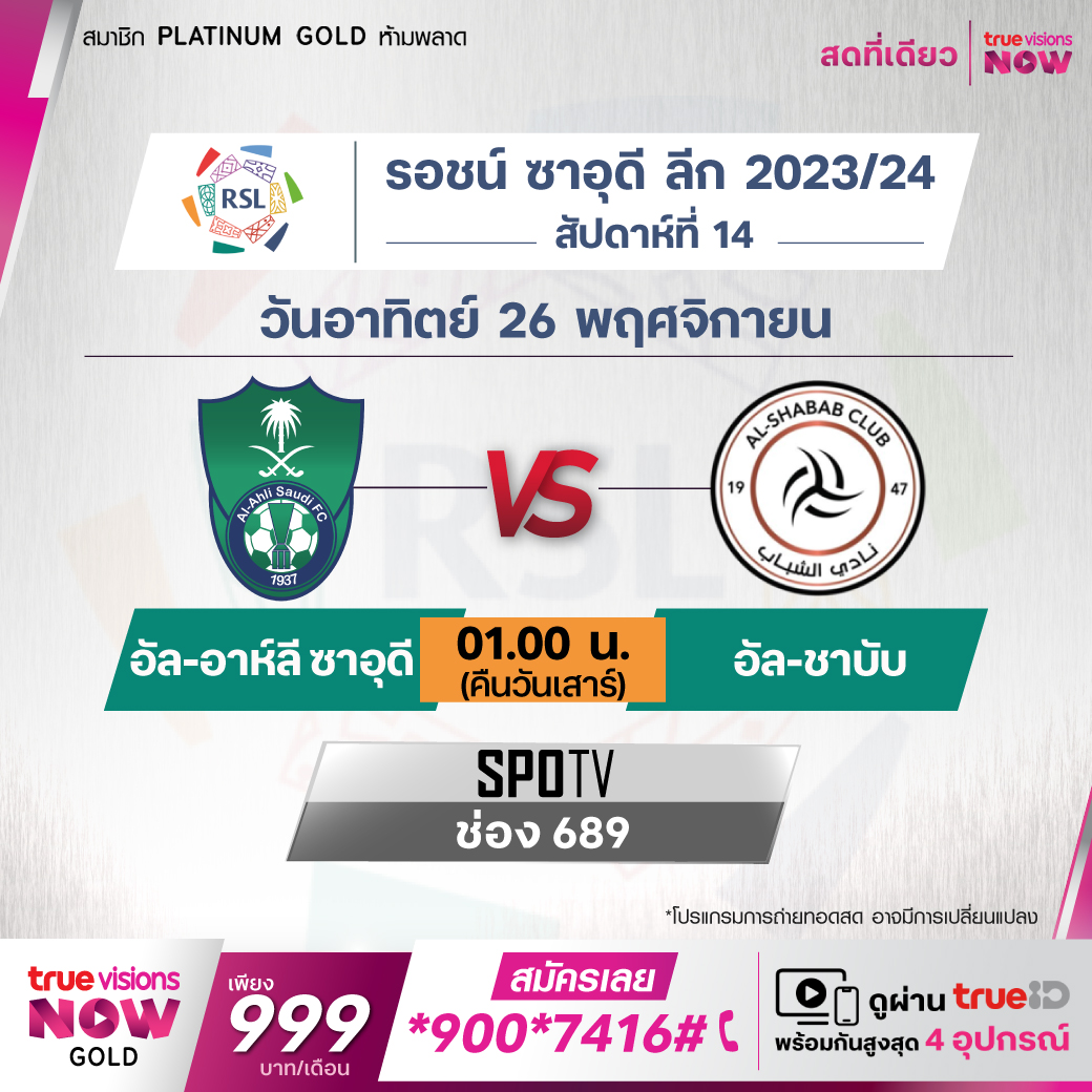 Al-Ahli Saudi vs Al-Shabab เวลา 01.00-03.00 ทางช่อง SPOTV (689)