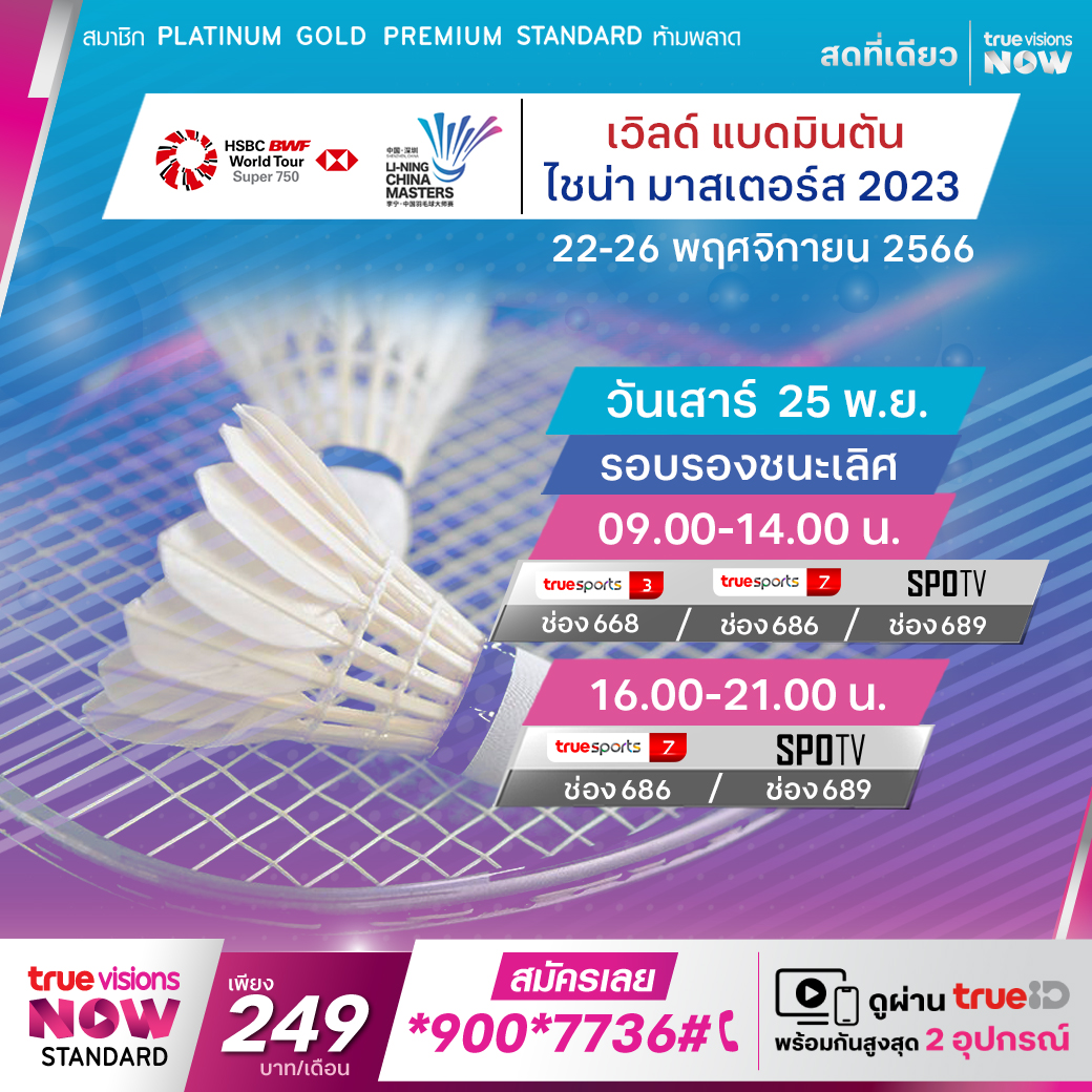 แบดมินตันเก็บคะแนนสะสมโลกสัปดาห์นี้ ไปกันที่ เสินเจิ้น ประเทศจีน กับรายการ ไชน่า มาสเตอร์ส 2023 ในรอบรองชนะเลิศ เชียร์นักแบดระดับโลก สดครบจุใจ ชมสด ทางทรูวิชั่นส์ ที่เดียว