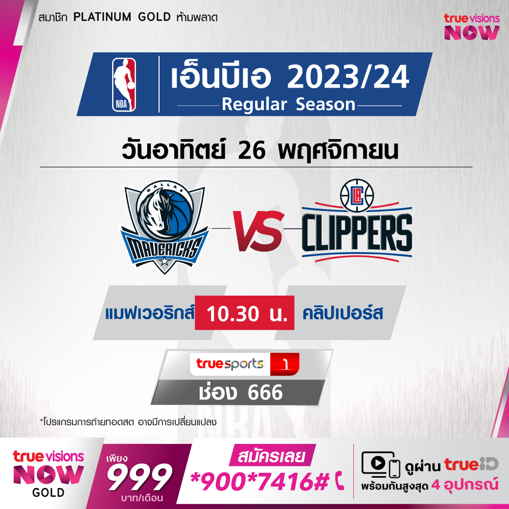 วันอาทิตย์ 26 Mavericks Vs Clippers เวลา 10.30 ทางช่อง TS 1 (666)
