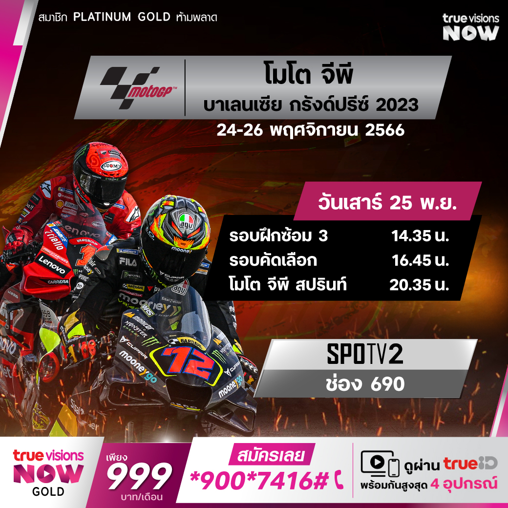 สงครามความเร็วสองล้อระดับชิงแชมป์โลก โมโต จีพี เวิลด์ แชมเปี้ยนชิพ เดินทางมาถึงตอนสุดท้ายของฤดูกาล 2023 รายการ บาเลนเซีย กรังด์ปรีซ์ จากประเทศสเปน แฟนๆ ที่ติดตามกันมาทั้งปี ต้องติดตามบทสรุปและผลการแข่งขันที่ทุกคนคาดไม่ถึงทั้ง 3 รุ่นที่สุดตื่นเต้น ทิ้งท้ายให้แฟนๆ คิดถึง และรอคอยการมาถึงของฤดูกาลใหม่ สดครบทุกช่วงการแข่งขัน ที่ ทรูวิชั่นส์