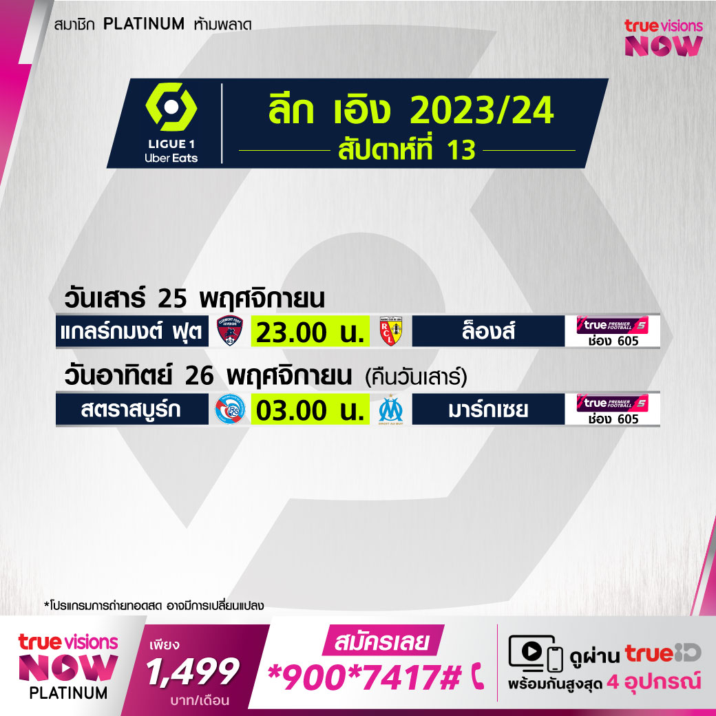 Clermont vs Lens เวลา 23.00-01.00 ทางช่อง TPF 5 (605)