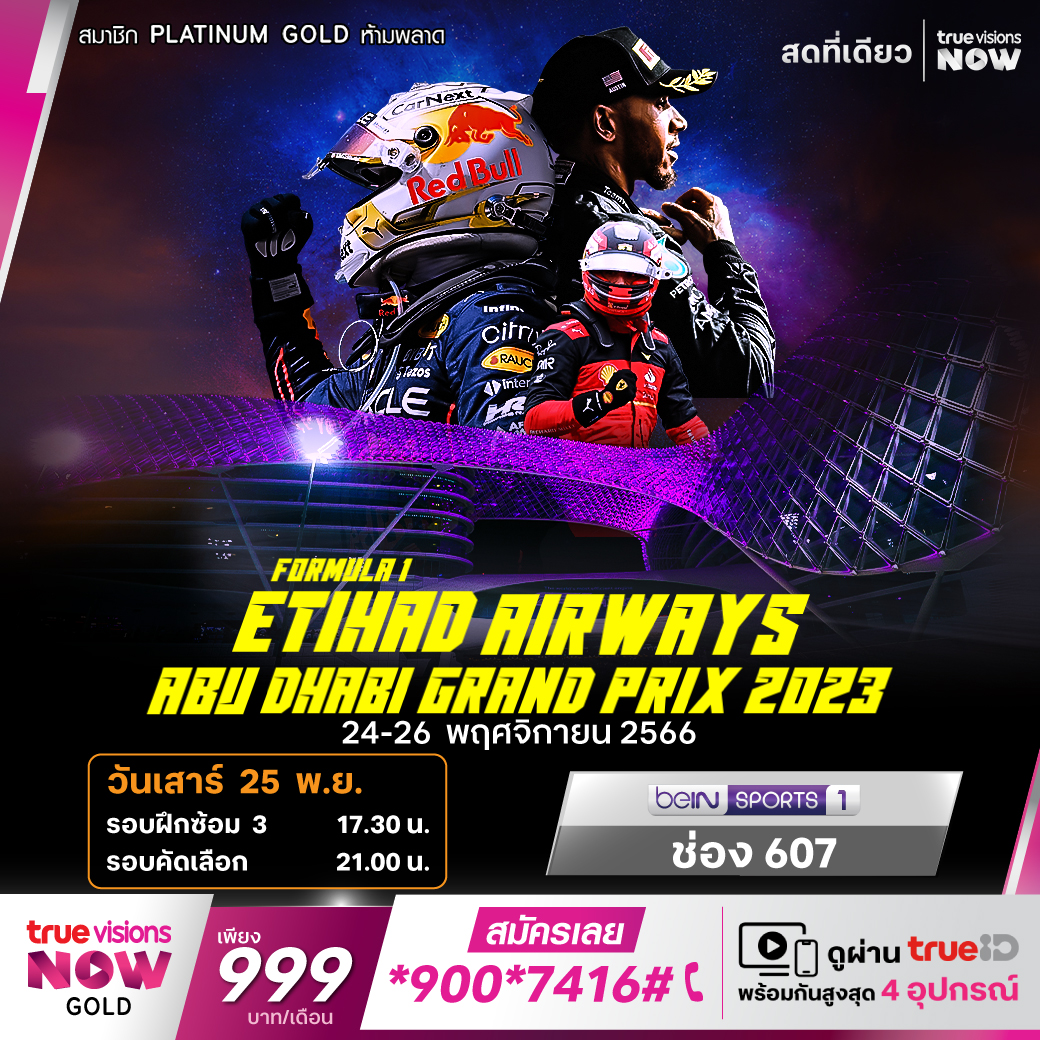 ปิดท้ายฤดูกาลด้วยความยิ่งใหญ่และสุดตื่นเต้น ที่แฟนๆ ต้องไม่พลาด กับศึกฟอร์มูล่า วัน เวิลด์ แชมเปี้ยนชิพ สนามสุดท้ายของปี 2023 รายการ อาบูดาบี กรังด์ปรีซ์ จากสังเวียน ยาส มารีน่า อาบูดาบี สหรัฐอาหรับเอมิเรตส์ นักแข่งทุกคนจากทุกทีม มีดีเท่าไหร่ ทิ้งทวนกันเต็มที่ สดทุกช่วงการแข่งขัน ชมสด ทางทรูวิชั่นส์ ที่เดียว