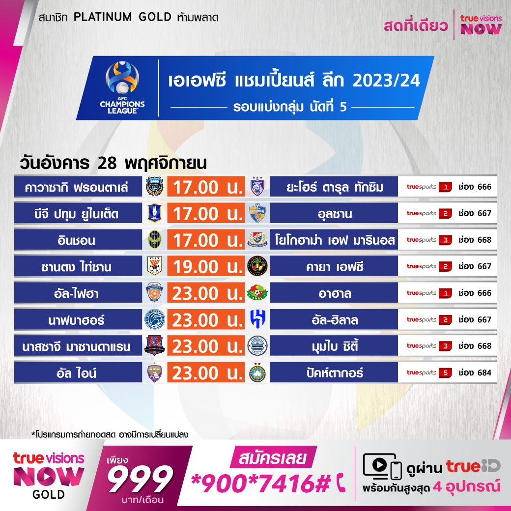 Al Ain vs Pakhtakor เวลา 23.00-01.00 ทางช่อง TS 5 (684)