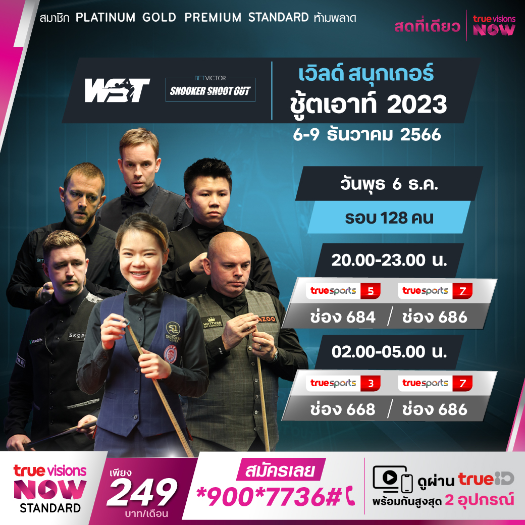 แฟนๆ สนุกเกอร์ต้องติดตามกันให้ได้ กับศึกสอยคิวที่มีความสนุกเร้าใจจากความเร็วและความแม่นของมือระดับโลก 128 คน กับศึก ชู๊ตเอาท์ 2023 เกมวัดใจที่ตัดสินกันด้วยระบบเฟรมเดียวน็อกเอาท์ รู้ผลแพ้-ชนะ ใน 10 นาที ใครไวกว่า แม่นกว่า ก็เข้ารอบไป สดจาก สวอนซี อารีน่า สหราชอาณาจักร ร่วมลุ้นกันว่าแชมป์ปีนี้จะเป็นใคร สดครบทุกแมตช์ ทางทรูวิชั่นส์ ที่เดียว
