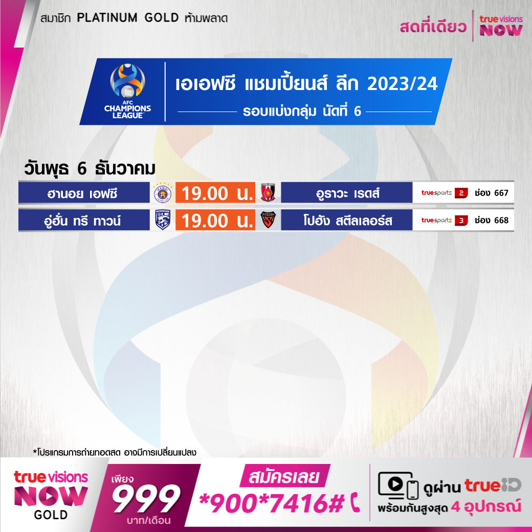Wuhan Three Towns vs Pohang Steelers เวลา 19.00-21.00 ทางช่อง TS 3 (668)