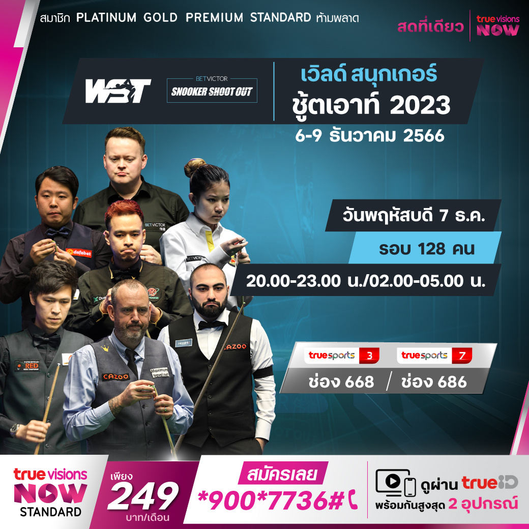 แฟนๆ สนุกเกอร์ต้องติดตามกันให้ได้ กับศึกสอยคิวที่มีความสนุกเร้าใจจากความเร็วและความแม่นของมือระดับโลก 128 คน กับศึก ชู๊ตเอาท์ 2023 เกมวัดใจที่ตัดสินกันด้วยระบบเฟรมเดียวน็อกเอาท์ รู้ผลแพ้-ชนะ ใน 10 นาที ใครไวกว่า แม่นกว่า ก็เข้ารอบไป สดจาก สวอนซี อารีน่า สหราชอาณาจักร ร่วมลุ้นกันว่าแชมป์ปีนี้จะเป็นใคร สดครบทุกแมตช์ ทางทรูวิชั่นส์ ที่เดียว