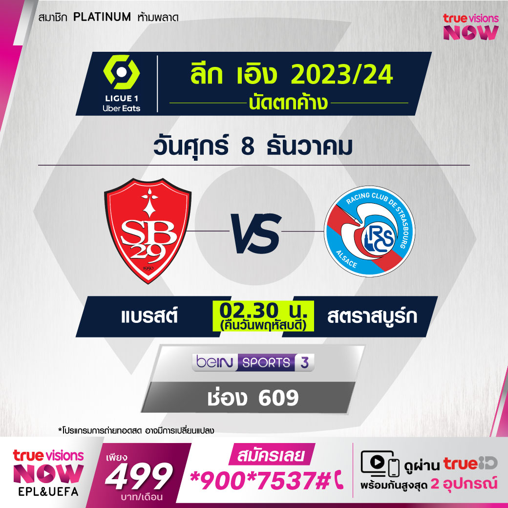 Brest vs Strasbourg เวลา 02.30-04.30 ทางช่อง beIN 3 (609)