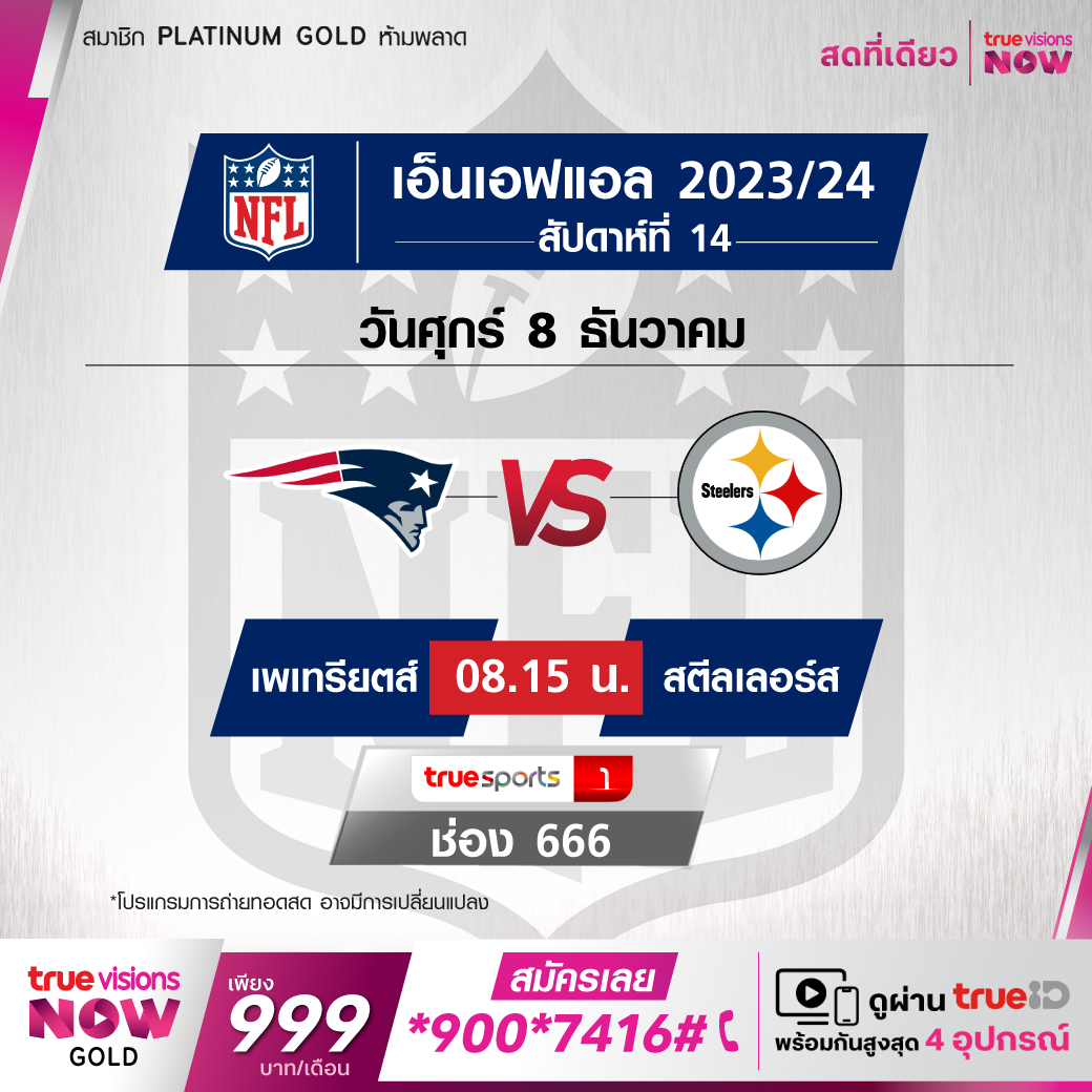 วันศุกร์ 8 ธ.ค. Patriots Vs Steelers เวลา 08.15 ทางช่อง TS 1 (666)