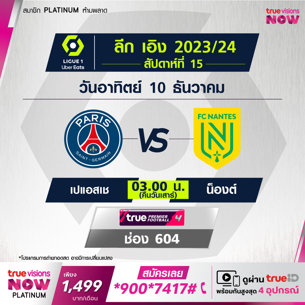 PSG vs Nantes เวลา 03.00-05.00 ทางช่อง TPF 4 (604)