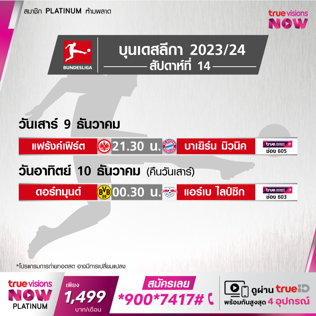 Frankfurt vs Bayern เวลา 21.30-23.30 ทางช่อง TPF 5 (605)