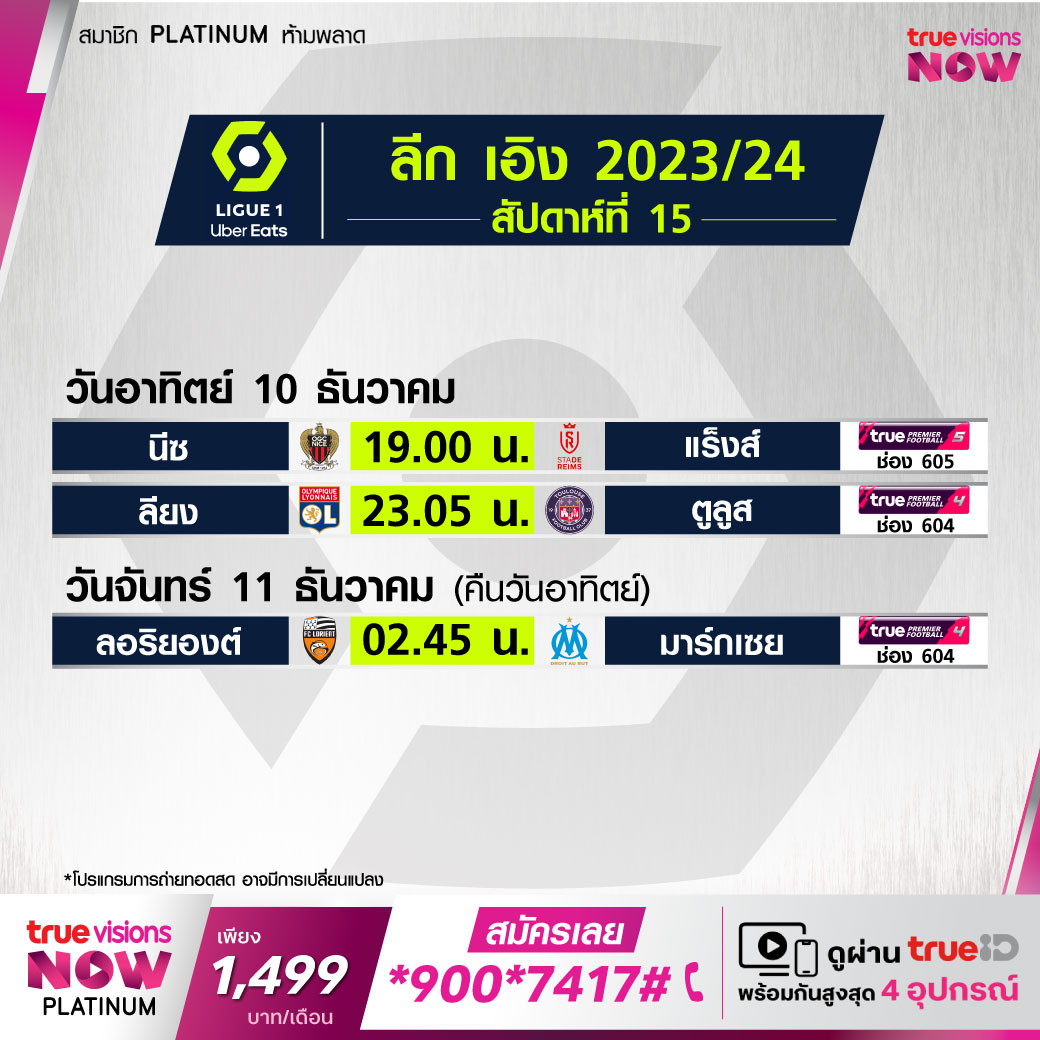 Nice vs Reims เวลา19.00-21.00 ทางช่อง TPF 5 (605)