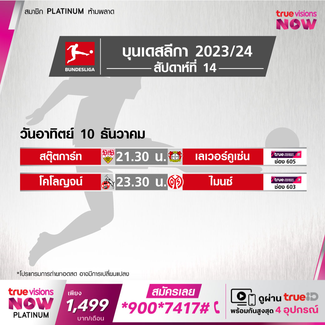 Stuttgart vs Leverkusen เวลา 21.30-23.30 ทางช่อง TPF 5 (605)