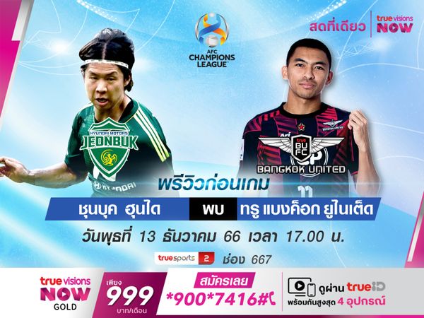 พรีวิวความพร้อมการแข่งขันฟุตบอลเอเอฟซี แชมเปี้ยนส์ ลีก ในเกมที่ ทรู แบงค็อก ยูไนเต็ด จะบุกไปเยือน ชุนบุค ฮุนได วันพุธที่ 13 ธันวาคม 2566