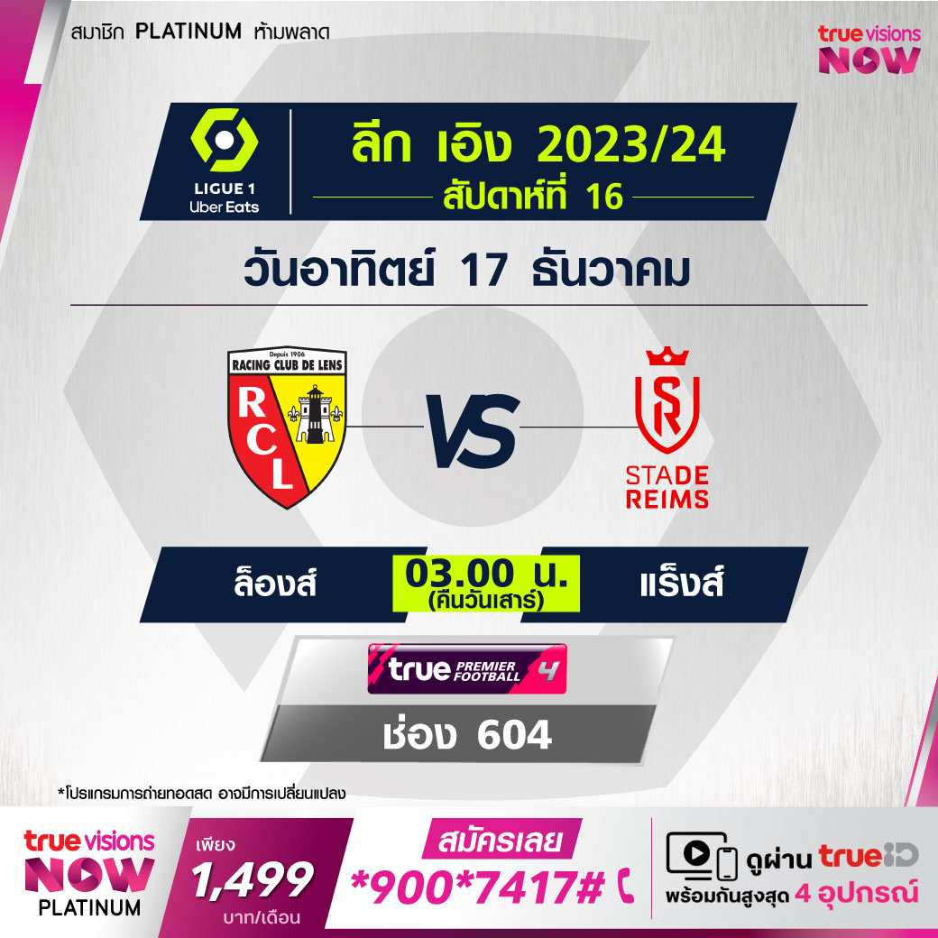 Lens vs Reims เวลา 03.00-05.00 ทางช่อง TPF 4 (604)