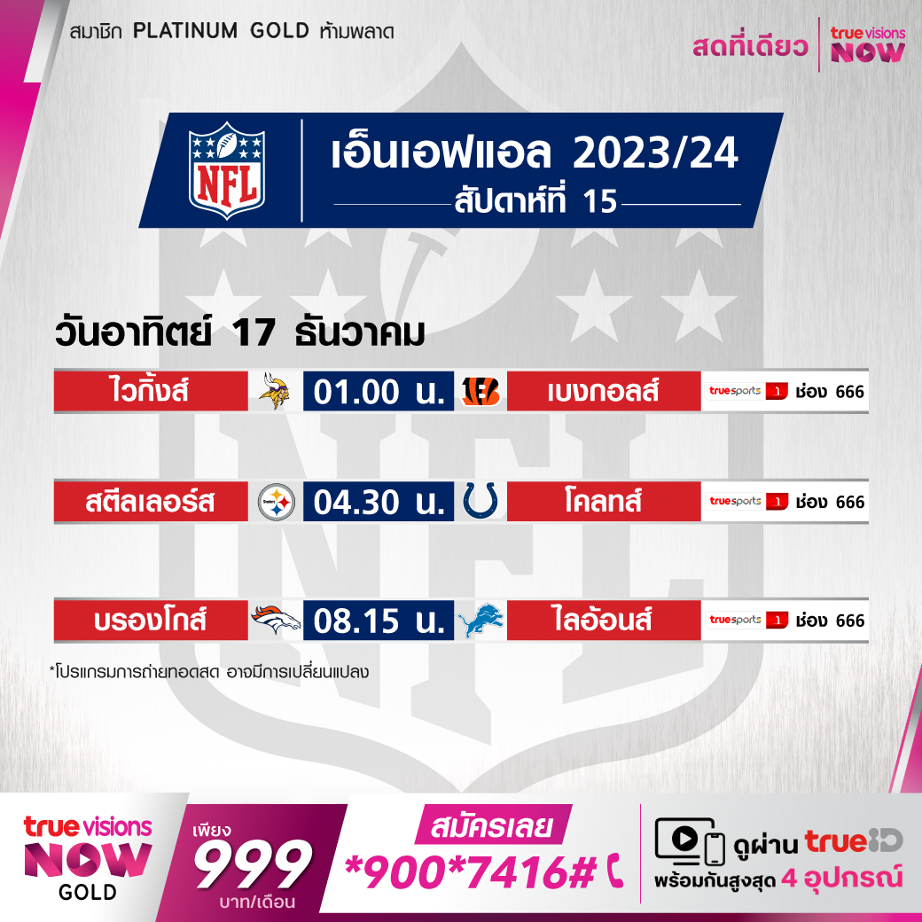 วันอาทิตย์ 17 ธ.ค. Vikings Vs Bengals เวลา 01.00 ทางช่อง TS 1 (666)