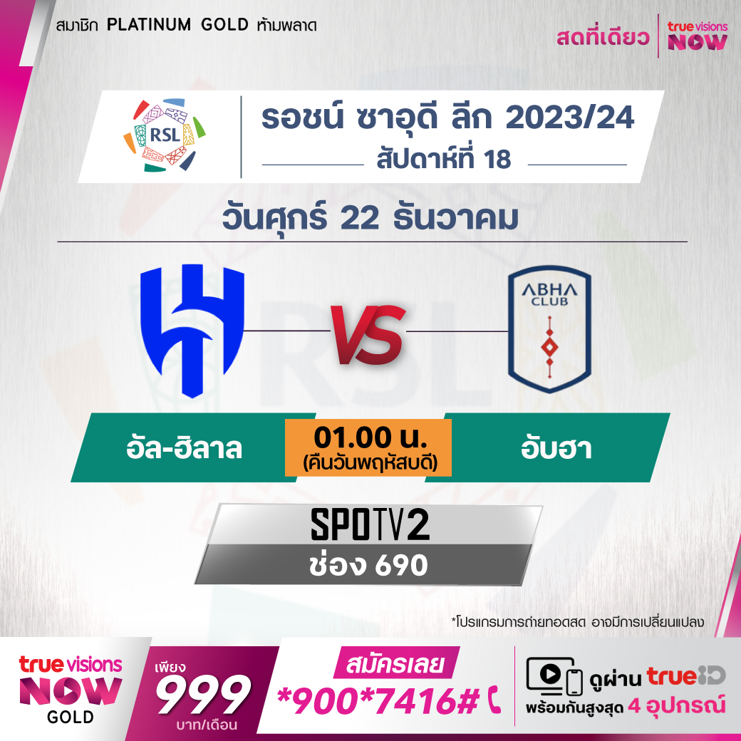 Al-Hilal vs Abha เวลา 01.00-03.00 ทางช่อง SPOTV2 (690)