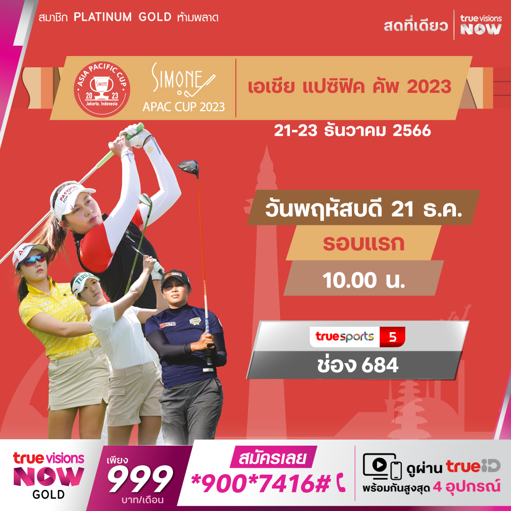แฟนๆ กีฬากอล์ฟ พลาดไม่ได้ กับการส่งใจเชียร์โปรสาวไทย นำโดย จีโน่ อาฒยา ฐิติกุล, โปรว่าน จารวี บุญจันนทร์, โปรพราว ชเน็ตตี วรรณแสน และ โปรซิม ณัฐกฤตา วงศ์ทวีลาภ ร่วมลุ้นแชมป์ในศึกแห่งศักดิ์ศรี เอเชีย แปซิฟิค คัพ 2023 กับทีมชั้นนำกว่า 16 ชาติของ เอเชีย แปซิฟิค สด เอ็กซ์คลูซีฟ จากสนาม Pondok Indah Golf ประเทศอินโดนีเซีย สดทางทรูวิชั่นส์ ที่เดียว