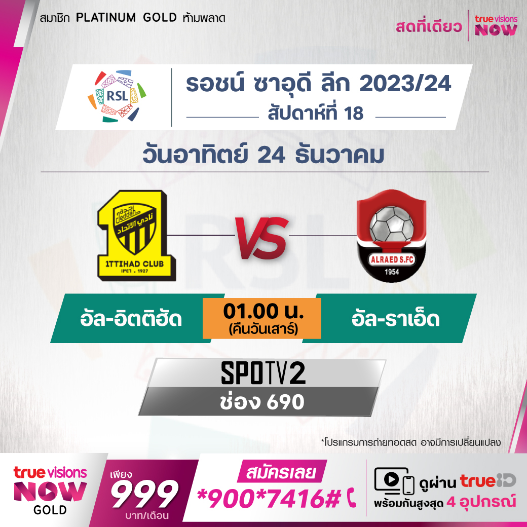Al-Ittihad vs Al-Raed เวลา 01.00-03.00 ทางช่อง SPOTV2 (690)