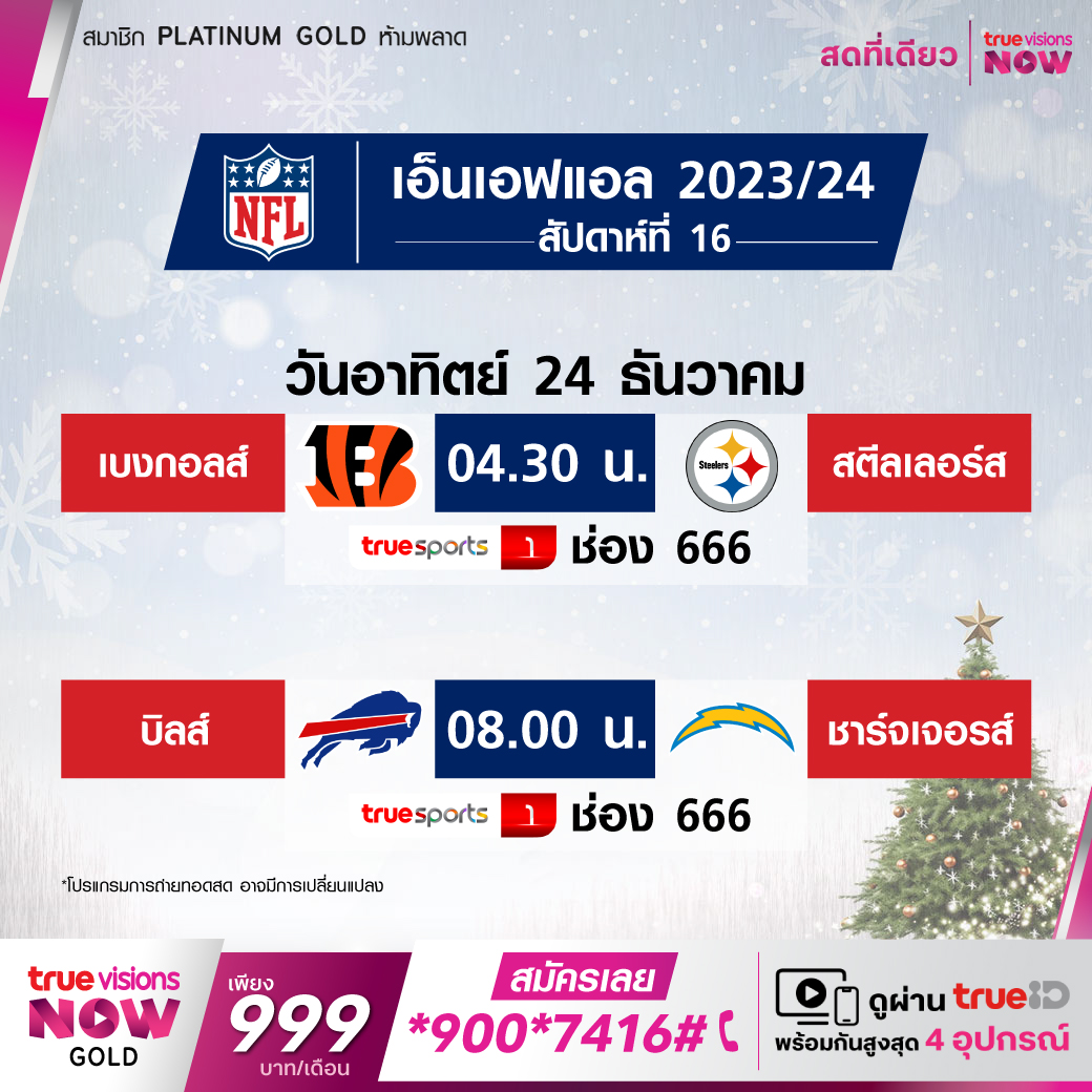 วันอาทิตย์ 24 ธ.ค. Bills Vs Chargers เวลา 08.00 ทางช่อง TS 1 (666)