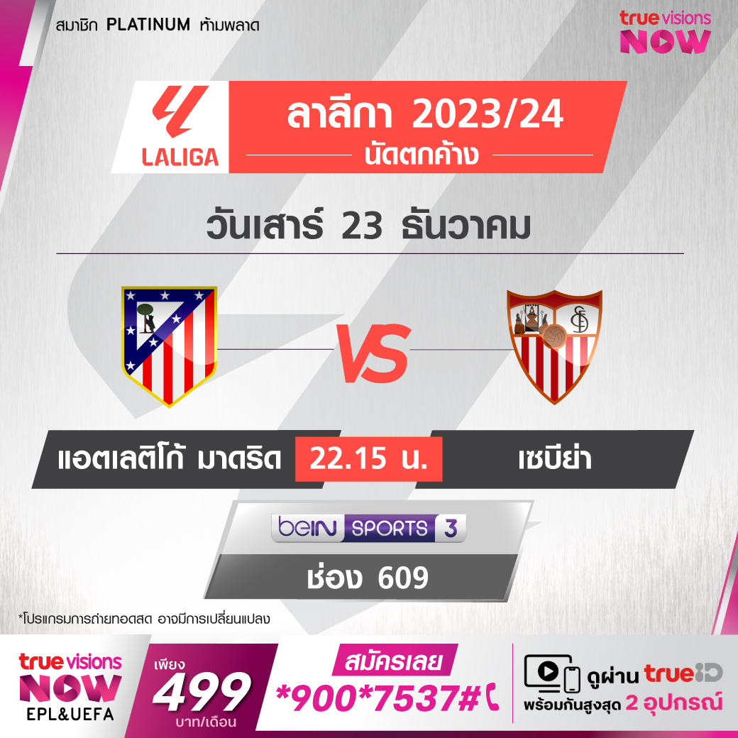 Atletico vs Sevilla เวลา 22.15-00.15 ทางช่อง beIN 3 (609)