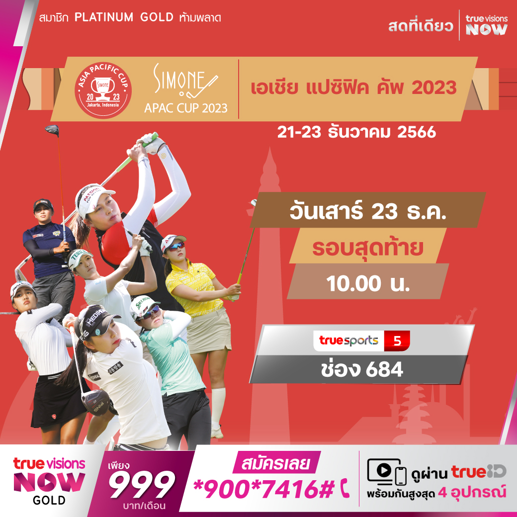 แฟนๆ กีฬากอล์ฟ พลาดไม่ได้ กับการส่งใจเชียร์โปรสาวไทย นำโดย จีโน่ อาฒยา ฐิติกุล, โปรว่าน จารวี บุญจันนทร์, โปรพราว ชเน็ตตี วรรณแสน และ โปรซิม ณัฐกฤตา วงศ์ทวีลาภ ร่วมลุ้นแชมป์ในศึกแห่งศักดิ์ศรี เอเชีย แปซิฟิค คัพ 2023 กับทีมชั้นนำกว่า 16 ชาติของ เอเชีย แปซิฟิค สด เอ็กซ์คลูซีฟ จากสนาม Pondok Indah Golf ประเทศอินโดนีเซีย สดทางทรูวิชั่นส์ ที่เดียว