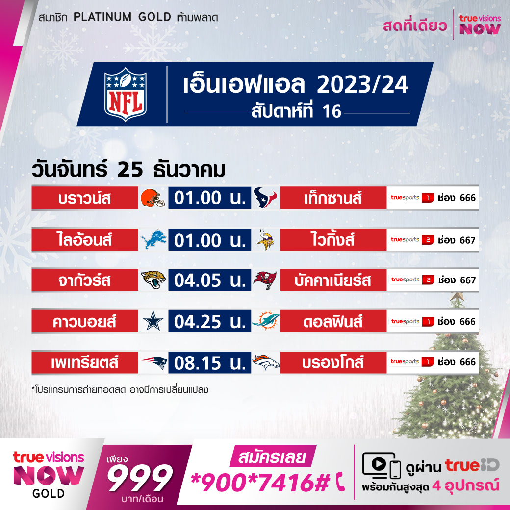 วันจันทร์ 25 ธ.ค. Patriots Vs Broncos เวลา 08.15 ทางช่อง TS 1 (666)