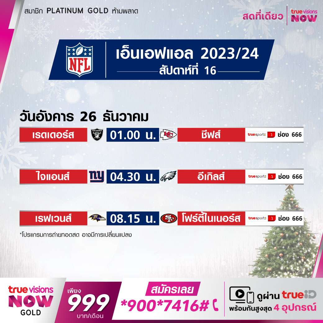 วันอังคาร 26 ธ.ค. Raiders Vs Chiefs เวลา 01.00 ทางช่อง TS 1 (666)