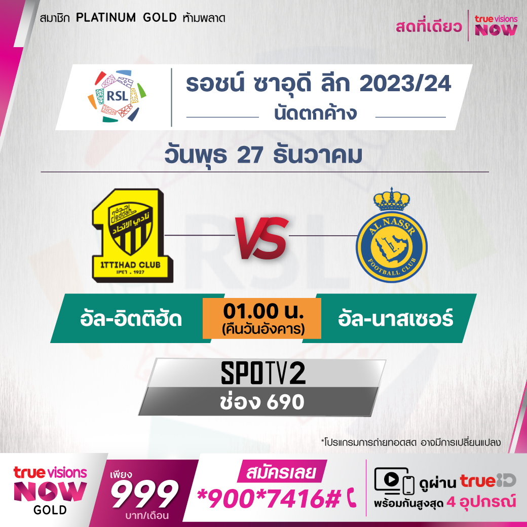 Al-Ittihad vs Al-Nassr เวลา 01.00-03.00 ทางช่อง SPOTV2 (690)