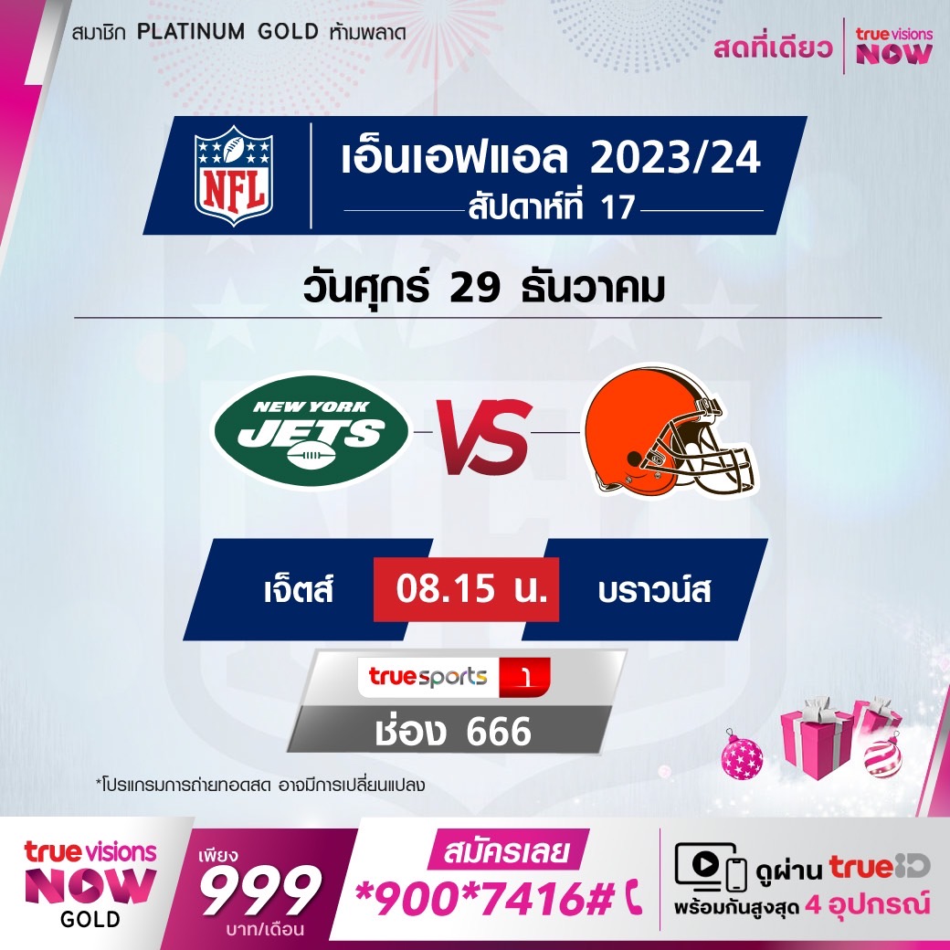 วันศุกร์ 29 ธ.ค. Jets Vs Browns เวลา 08.15 ทางช่อง TS 1(666)