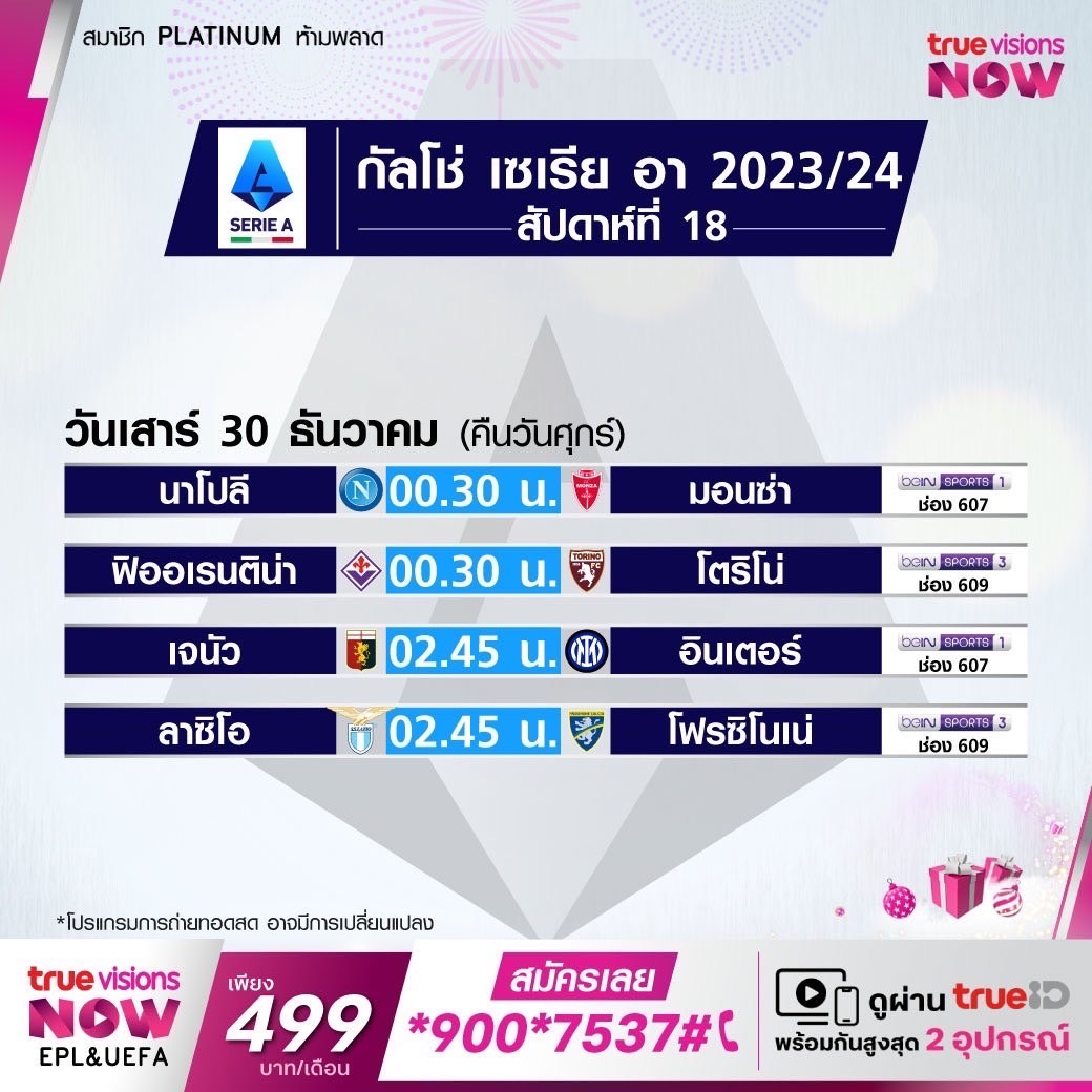 Genoa vs Inter เวลา 02.45-04.45 ทางช่อง beIN 1 (607)