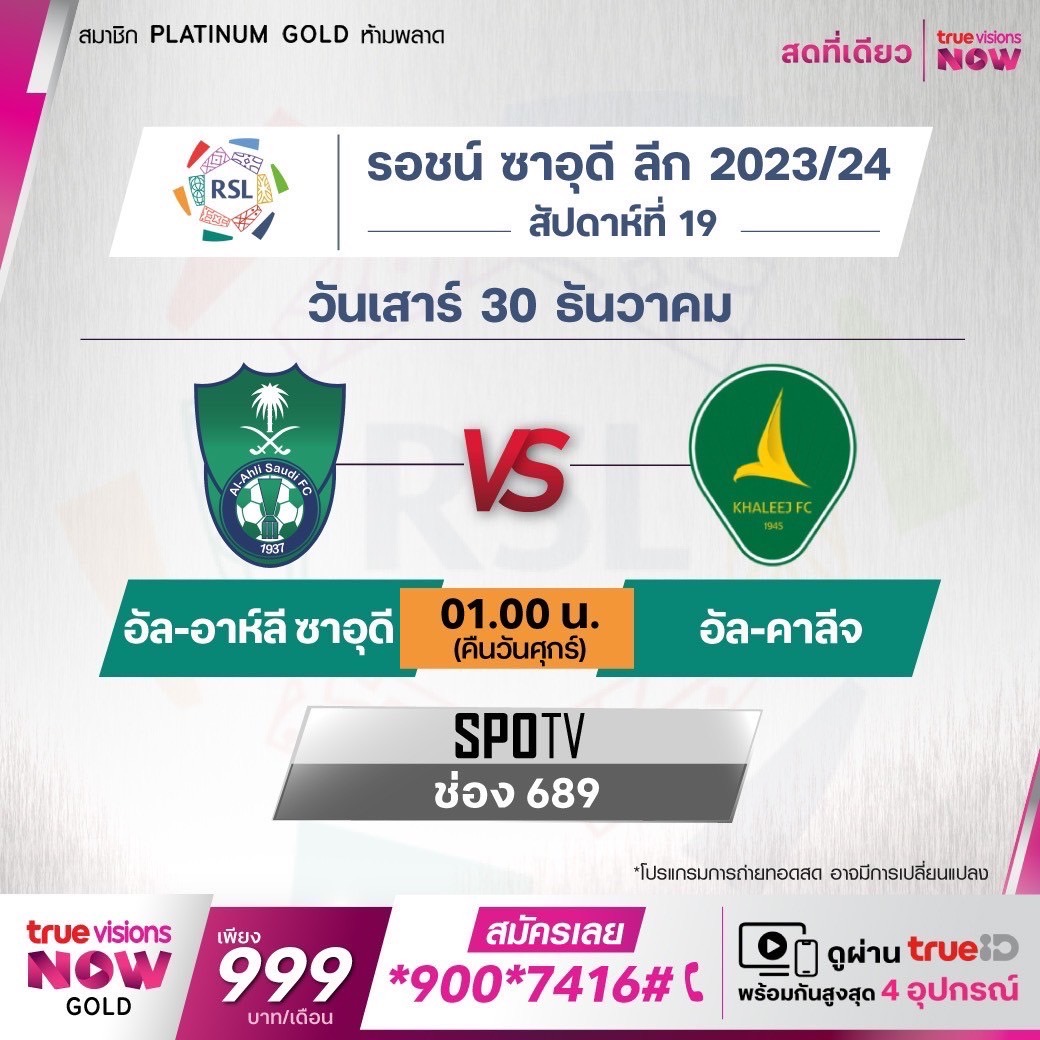 Al-Ahli Saudi vs Al-Khaleej เวลา 01.00-03.00 ทางช่อง SPOTV (689)