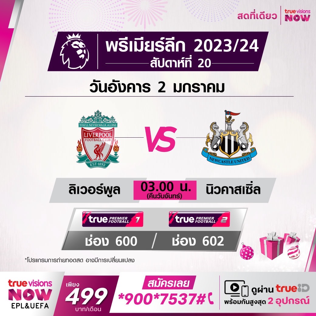 Liverpool vs Newcastle เวลา 03:00 ทางช่อง TPF 1(600) / TPF 2 (602)