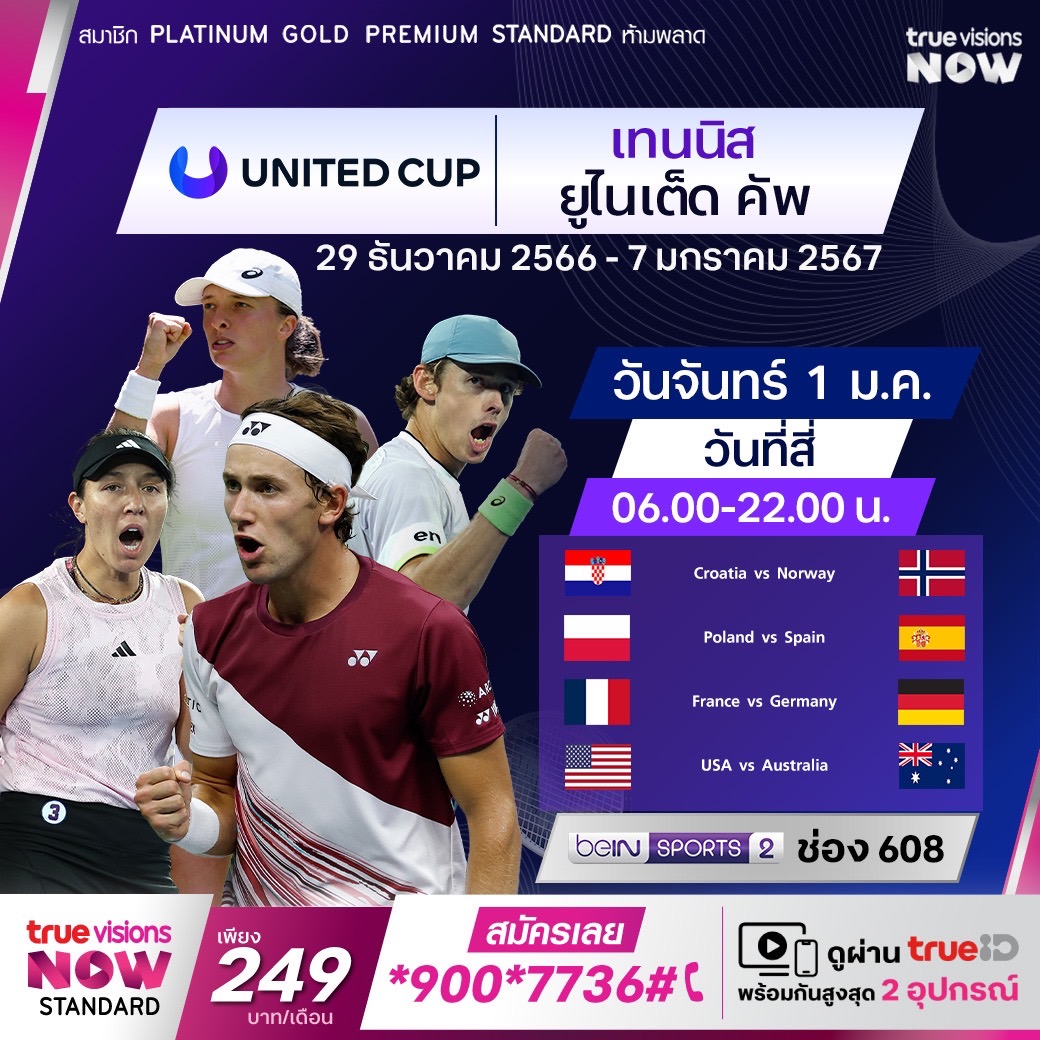 วันนี้มีอะไรดูที่ ทรูวิชั่นส์ ประจำวันจันทร์ที่ 1 มกราคม 67 ในส่วนของฟุตบอลยังมีศึกพรีเมียร์ลีก อังกฤษ ให้ได้ตามเชียร์กันต่อ ขณะที่กีฬาอื่นๆ ยังมีศึกเทนนิส ยูไนเต็ด คัพ งานนี้ ทรูวิชั่นส์ จัดเต็มให้ชมกันถึงบ้าน
