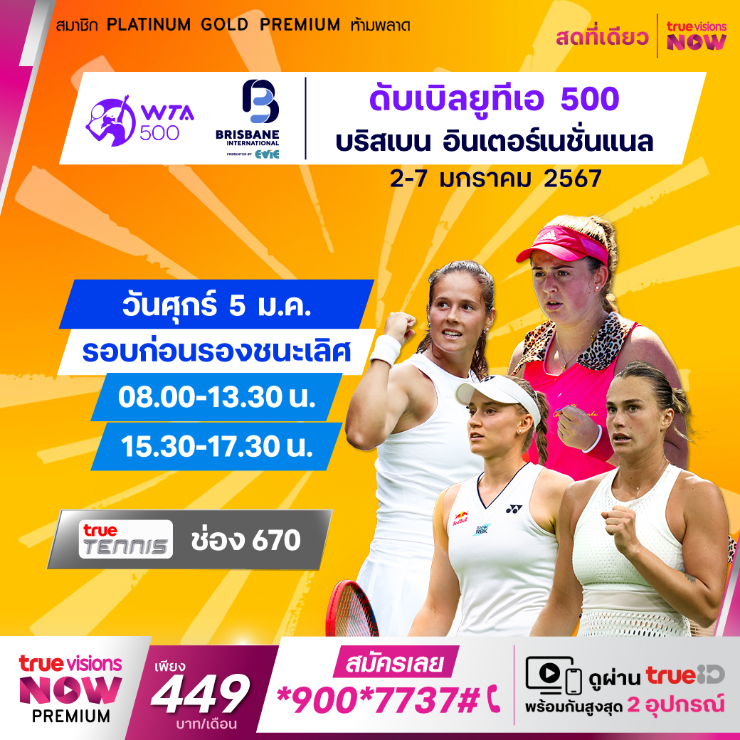 เทนนิสหญิง ดับเบิ้ลยูทีเอ ทัวร์ รายการ บริสเบน อินเตอร์แนชั่นแนล รายการระดับ 500 พบกับนักเทนนิสดาวดังมาร่วมกันชิงชัย เพื่อเตรียมตัวสำหรับศึกแกรนด์สแลมแรกของปี ออสเตรเลียน โอเพ่น ที่ ทรูวิชั่นส์ ที่เดียว