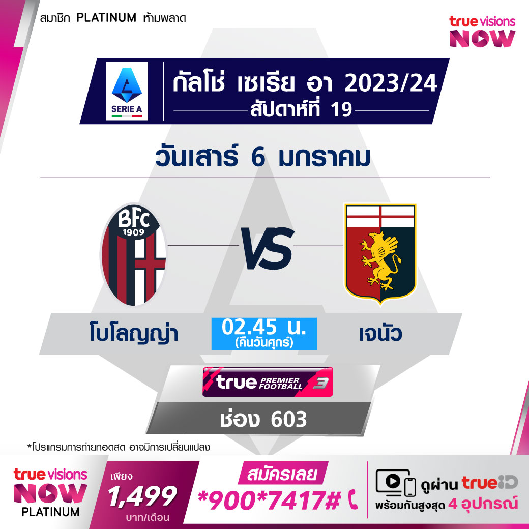 Bologna vs Genoa เวลา 02.45-04.45 ทางช่อง TPF 3 (603)