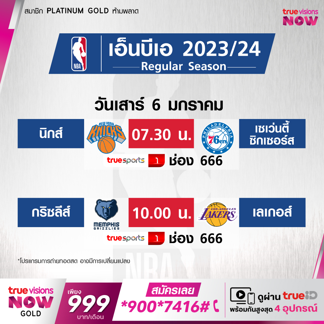 วันเสาร์ 6 ม.ค. Grizzlies Vs Lakers เวลา 10.00 ทางช่อง TS 1 (666)