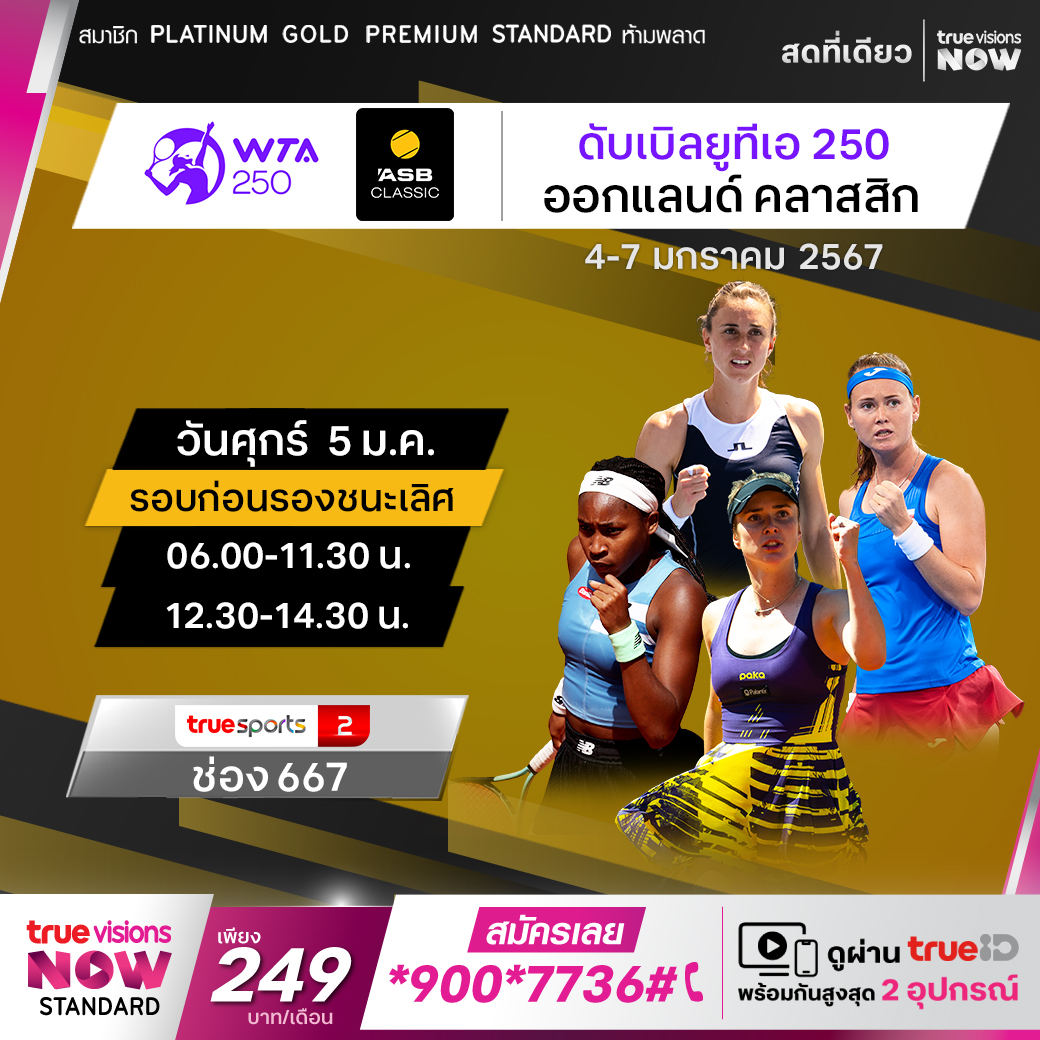 ติดตามชมการแข่งขันเทนนิสหญิงรายการเก่าแก่จากเมืองออคแลนด์ ประเทศนิวซีแลนด์ นำโดย โคโค กอฟ์ฟ และ เอลินา สวิโตลินา รวมถึงนักเทนนิสหญิงระดับโลกอีกหลายคน ติดตามชมการถ่ายทอดสด เทนนิสหญิง ออคแลนด์ คลาสสิก เริ่มวันที่ 4 มกราคม ทางช่อง TrueSport 2 ชมสดที่ ทรูวิชั่นส์ ที่เดียว
