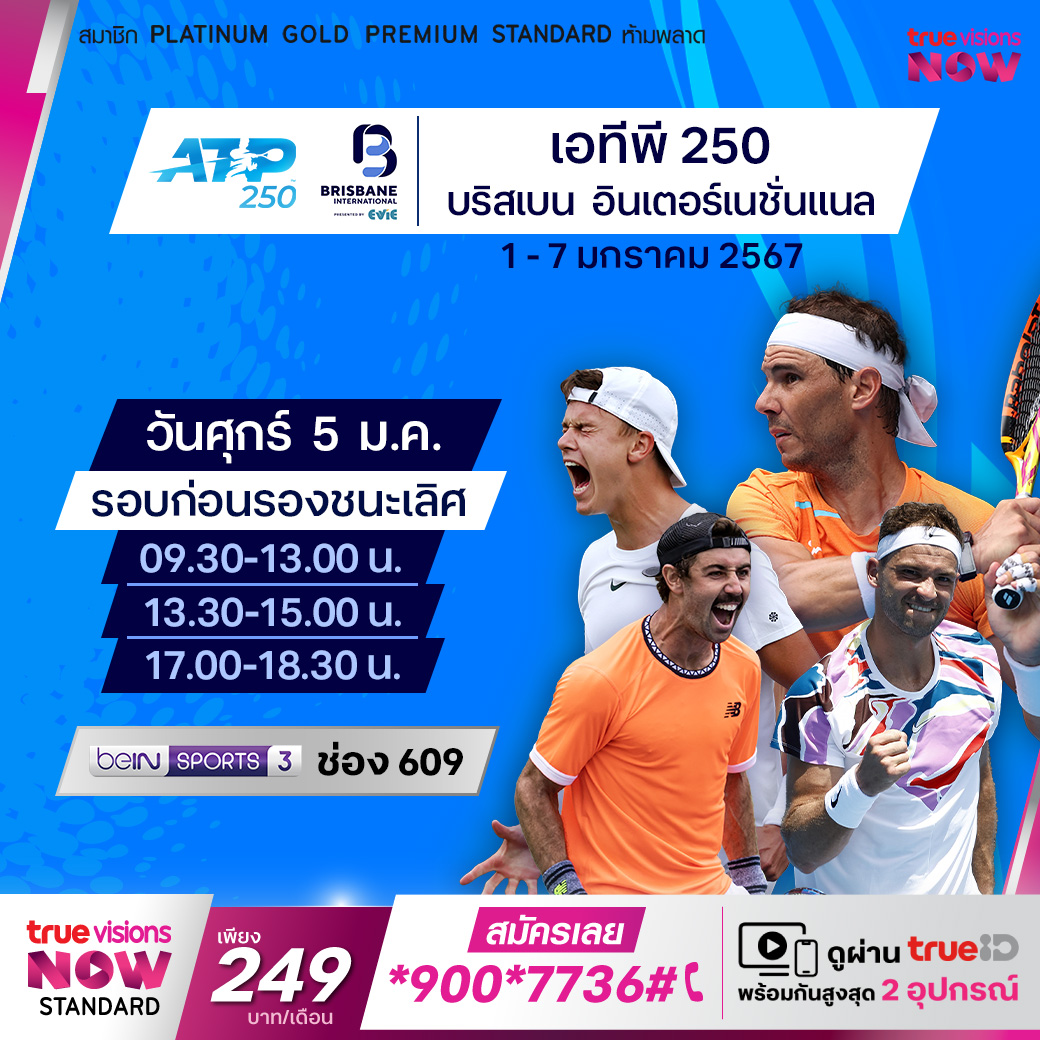 ติดตามชมการแข่งขันเทนนิสชาย เอทีพี ทัวร์ รายการแรกของฤดูกาล บริสเบน อินเตอร์แนชั่นแนล มาร่วมลุ้นว่าใครจะคว้าแชมป์รายการแรกของปีไปครอง