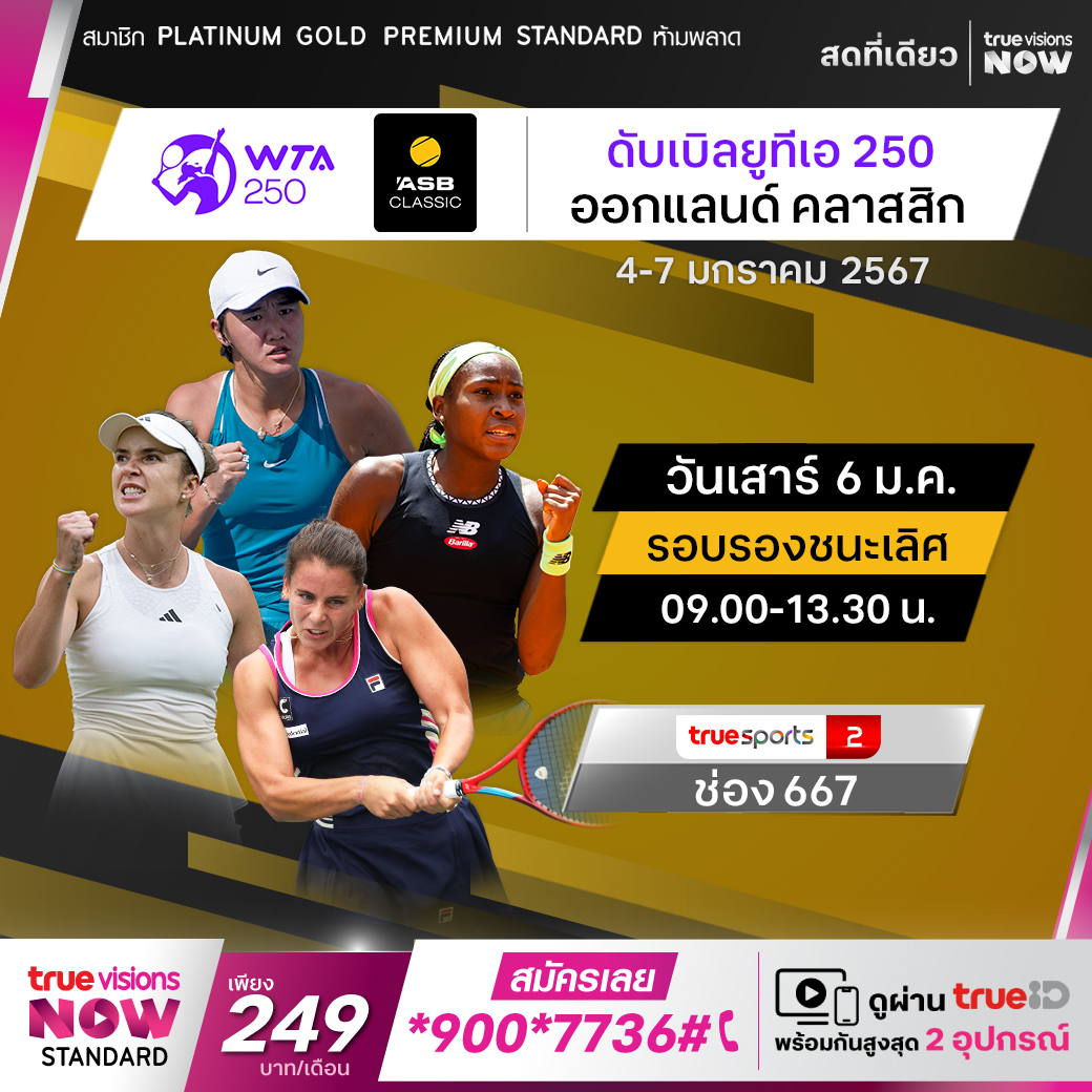 ติดตามชมการแข่งขันเทนนิสหญิงรายการเก่าแก่จากเมืองออคแลนด์ ประเทศนิวซีแลนด์ นำโดย โคโค กอฟ์ฟ และ เอลินา สวิโตลินา รวมถึงนักเทนนิสหญิงระดับโลกอีกหลายคน ติดตามชมการถ่ายทอดสด เทนนิสหญิง ออคแลนด์ คลาสสิก เริ่มวันที่ 4 มกราคม ทางช่อง TrueSport 2 ชมสดที่ ทรูวิชั่นส์ ที่เดียว